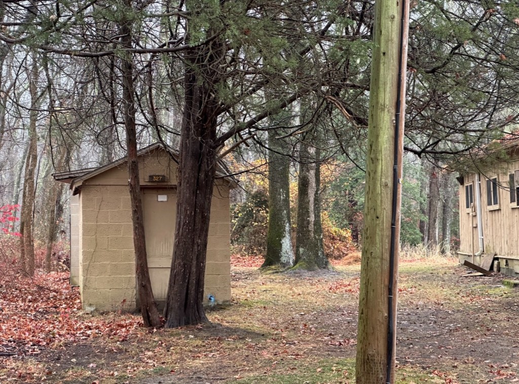 By the way, this is the next in line above, but that main house with the chimney has a floor all crashed out, like glare on the window prevents the passerby from any clear sight within, or photo in that way,