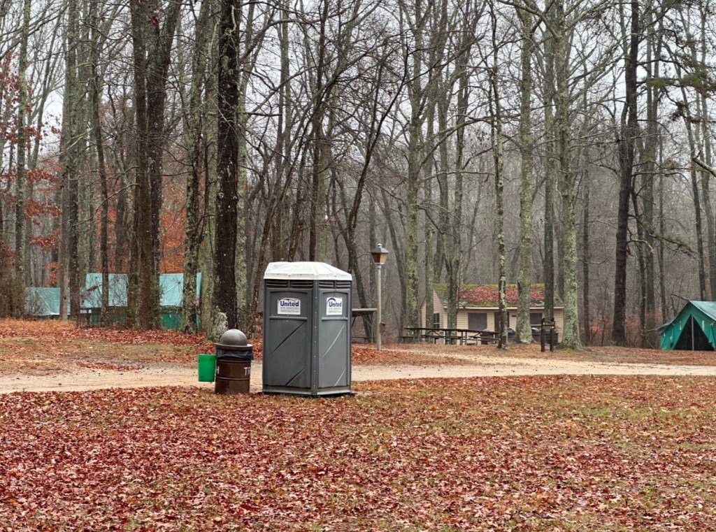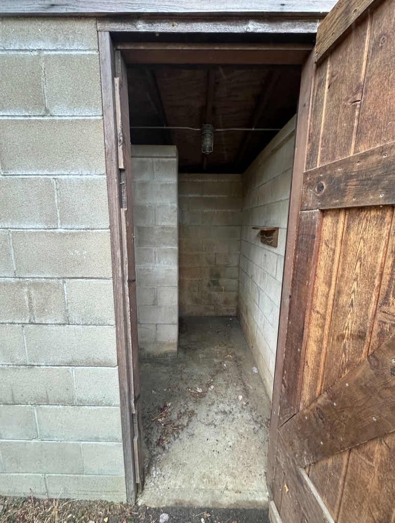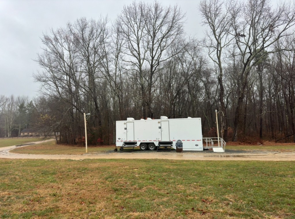 The permanent temporary bathrooms with the CG plate, doors locked in perpetuity, what kind of redacts they got in there? Next slide,
