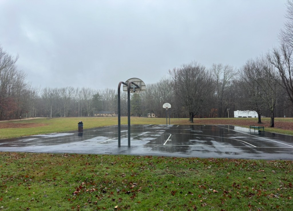 Then the necessary not at all, the asphalt of the jail like basketball court, and do you think one game of b-ball has ever been played here at all? Just tear it up, throw it out, dumb County Government swine, what is being covered up here in fine? Next slide,