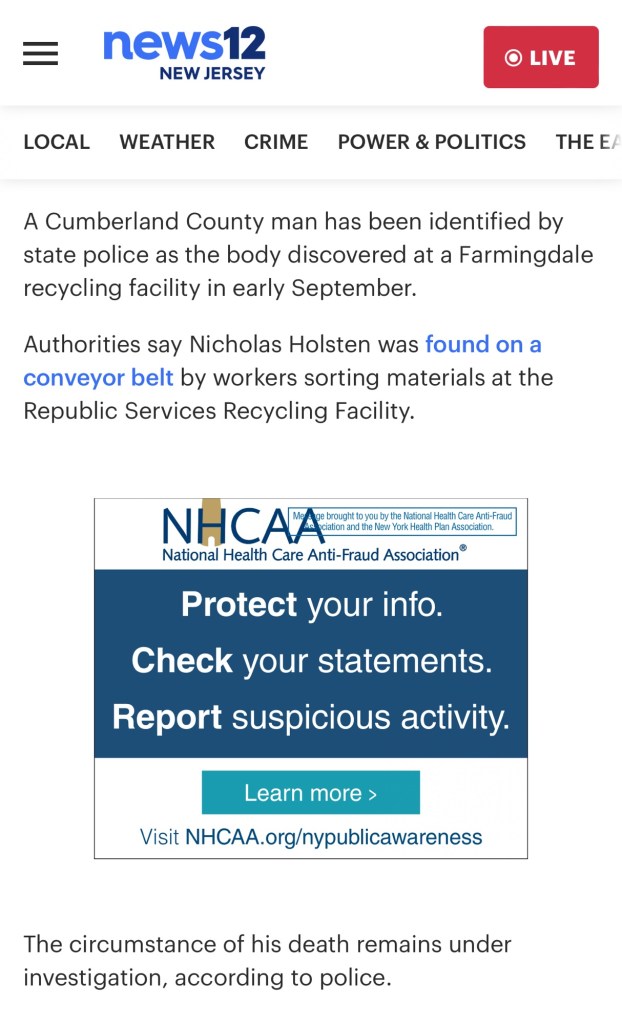 Monmouth County shit for brains, the dumbest of the dumb, for this reason remains, like creep horror movie set, you’ve already got one ready and yet, next slide,