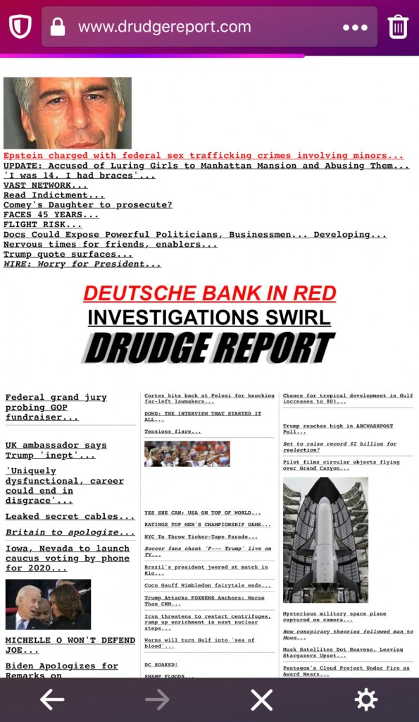 ON ABOUT 7/8/2019, PIZZAGATE DRUDGE IN WHAT COVER-UP MODE?